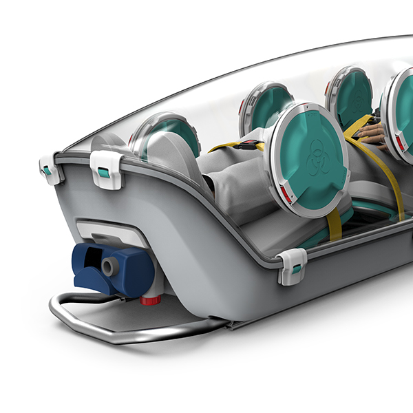 本機は本体に設置された負圧機構と A2P3 フィルトレーションにより周囲の環境からポッド内部の密封状態を維持しています。救急車両、ヘリコプターや固定翼機などへの搭載も仮に航空機内で急減圧が発生しても汚染物質がポッド外に漏れることはがありません。これにより患者を汚染地域から安全に搬出することができます。