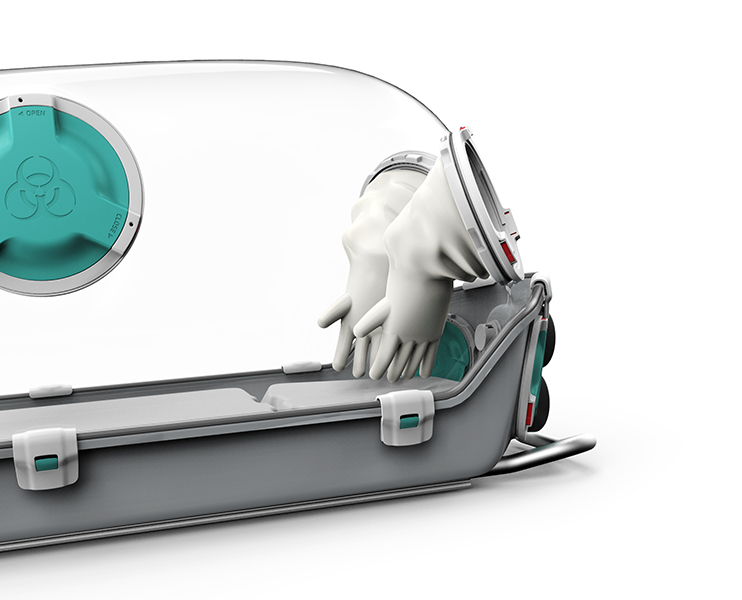 臨床現場の声をもとに開発された隔離搬送システムです。負圧機構とP3フィルトレーションで内部を密閉し、感染拡大を防止。高度な医療処置にも対応し、航空機にも搭載可能。病院や救急、軍・沿岸警備隊など多様な現場で活用されています。