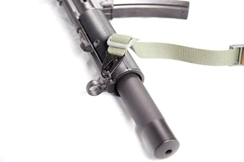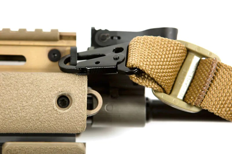 互換性 | H&Kの武器、SCAR、SIG、またはその他の小さなアイレットに見られる小さなスリングアイレット用。 |
