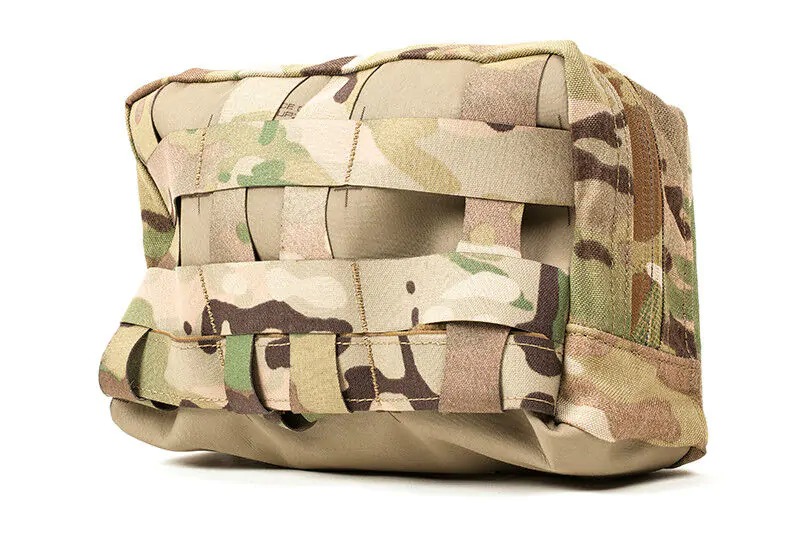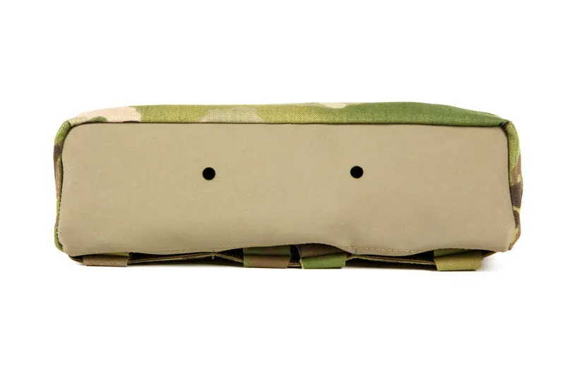 フロントが分割された薄型で軽量なデザインで、うつ伏せのときにも簡単にジッパーを開けることができます。ポーチは4つのマガジンを固定し、各マガジンポーチの前面に追加のMOLLEアクセサリを取り付けることもできます。