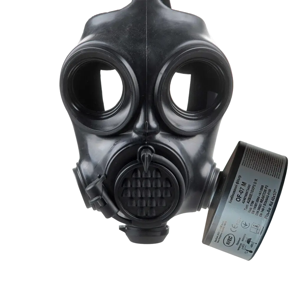 軍用設計で毒性物質や生物剤、放射性粒子から顔と呼吸器を守ります。給水装置搭載でマスクを外さず水分補給が可能。夜間用光学機器にも対応し、3サイズ展開で顔にフィット。国際規格準拠で各種フィルターと互換性も確保した、軽量で信頼性の高い保護マスクです。