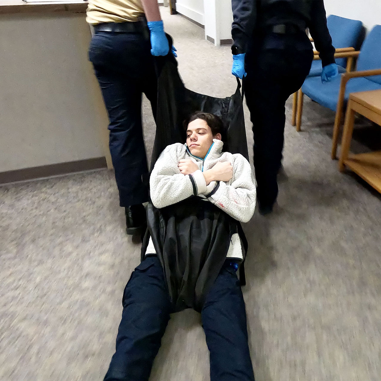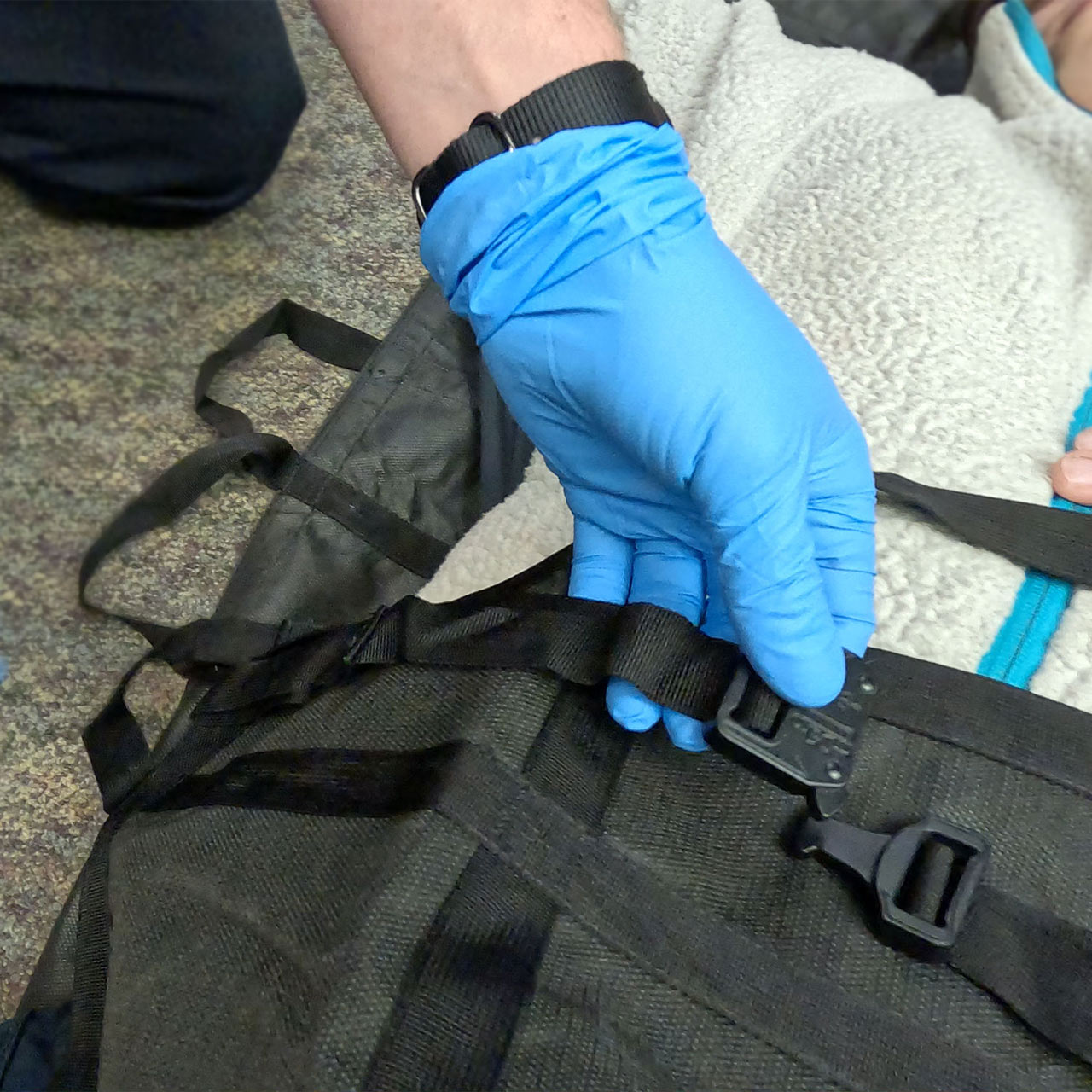 クイックリッターの同等品として開発されました。高耐久ナイロンと、耐水性のある不織布素材で作られています。金属製のバックルとストラップにより、負傷者を安全に搬送できます。また、底部には耐久性に優れた素材が取り付けられており引きずって移動させることが可能です。