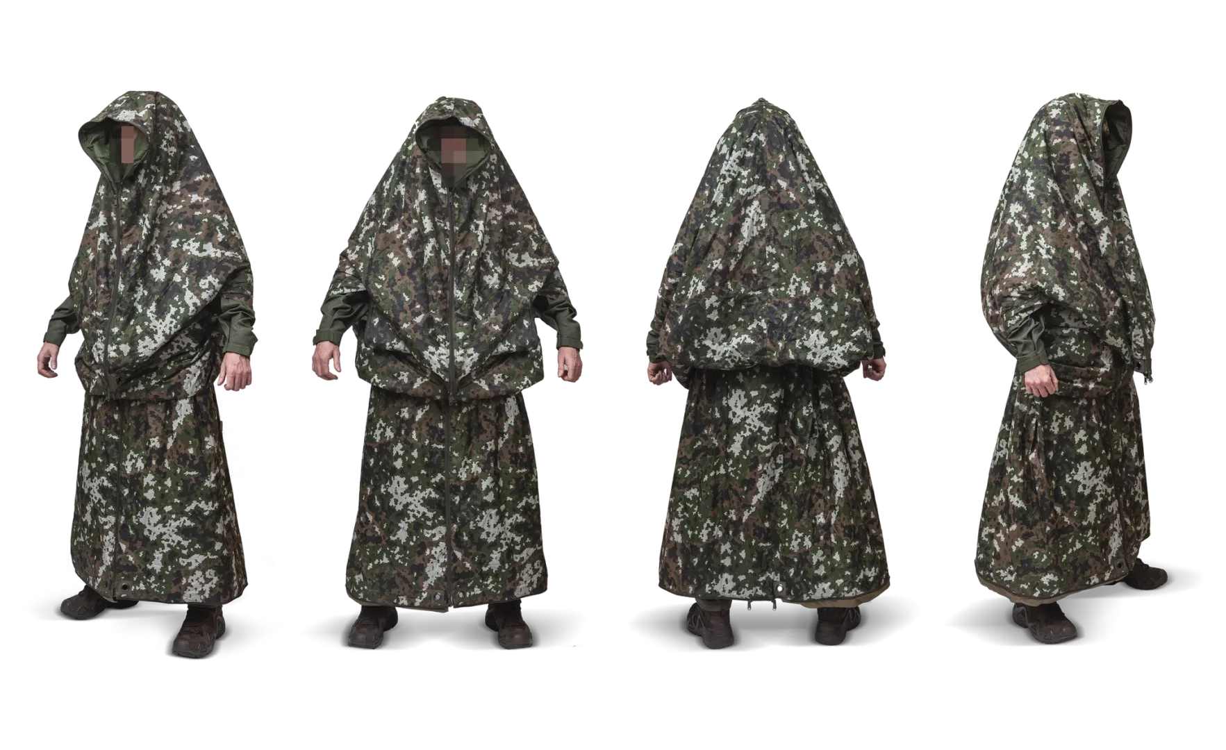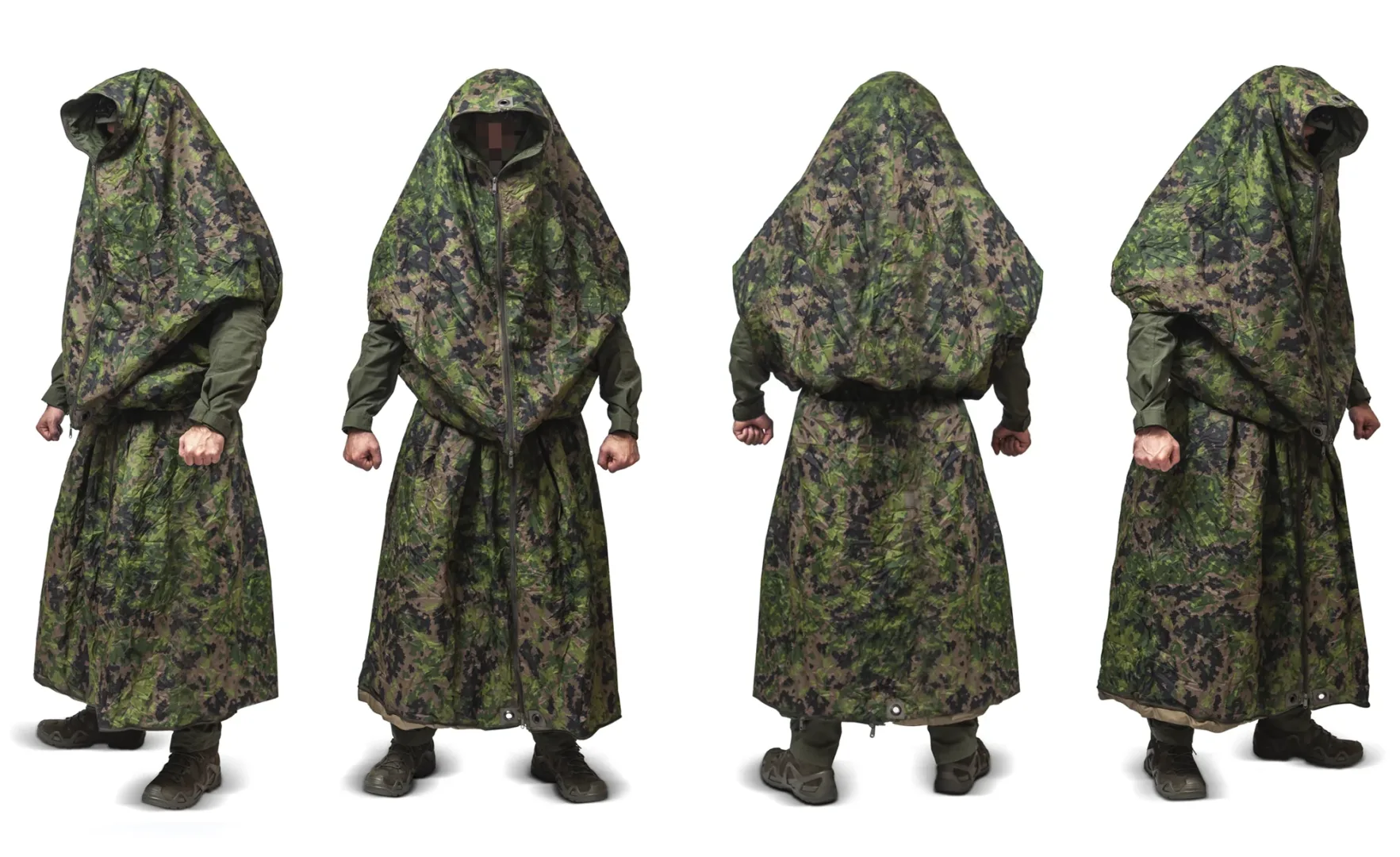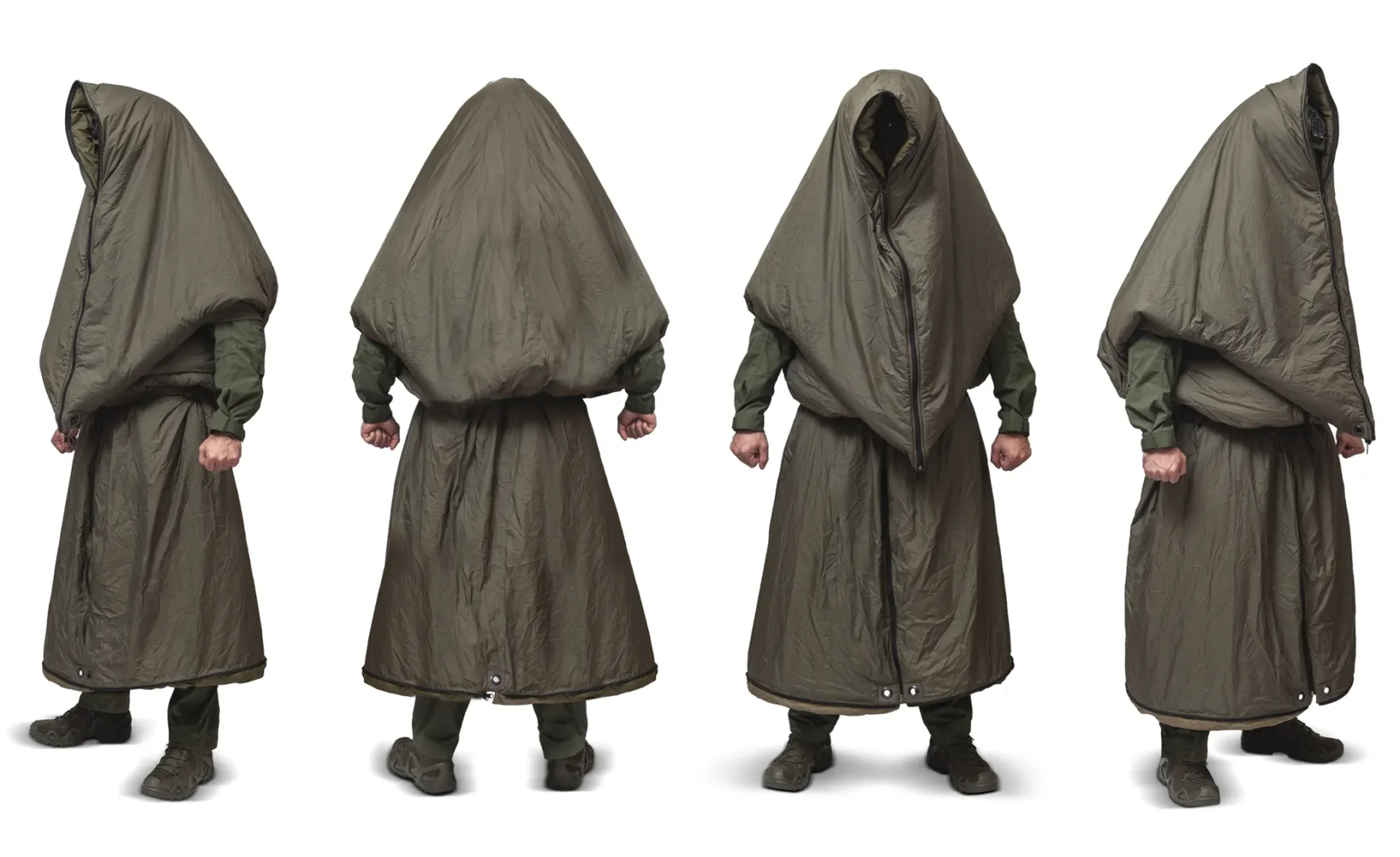 EU 製の多層断熱クローク。ポンチョ、毛布、テント、スリーピングバッグに変形可能で、ジッパー開口により両手も自由に使えます。軽量1.5kg ながら高い保温性とIR 反射防止コーティングを備え、アウトドアや軍用観測、狩猟など厳しい環境で活躍する万能ギアです。