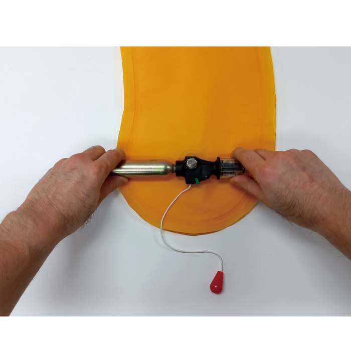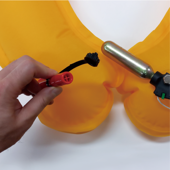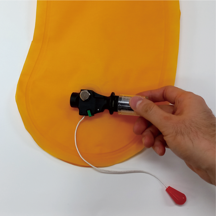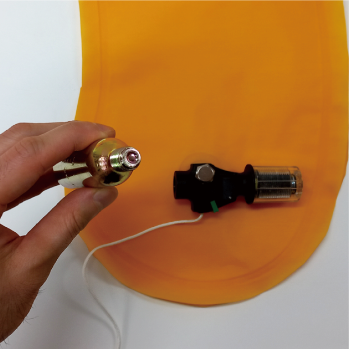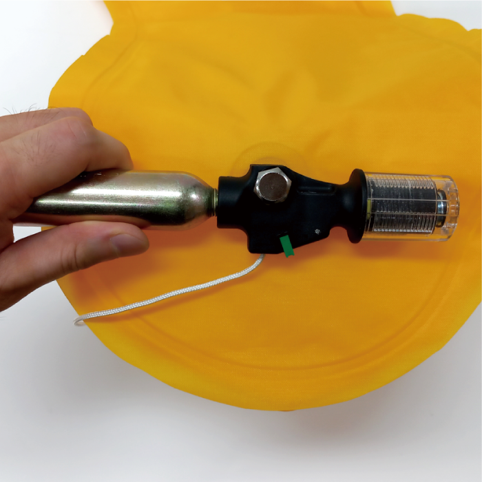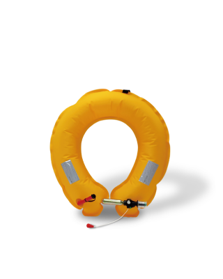 自動膨張式の救命具です。水に触れると2秒で膨らみ救命浮環を形成。軽量で携帯性に優れ、20〜30m 先まで片手で投げられます。交換可能なカートリッジで再利用も容易。高視認性の黄色と反射材で緊急時も素早く発見できます。