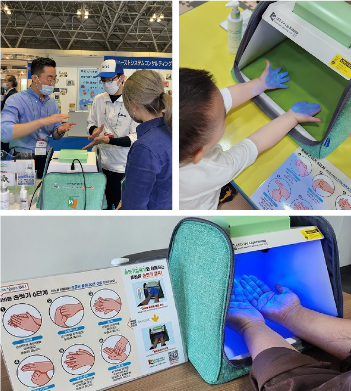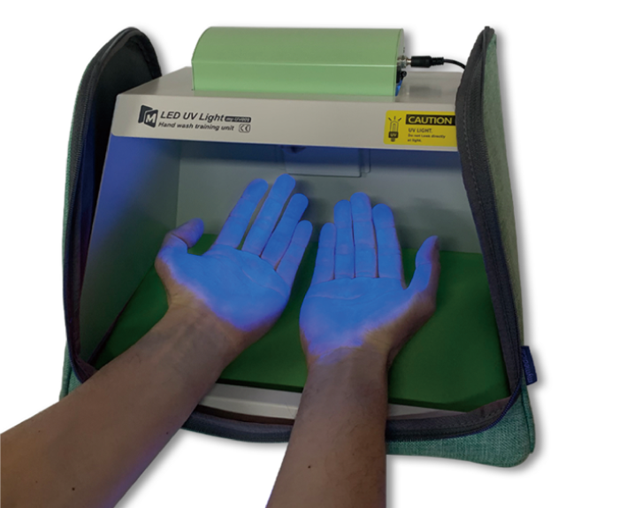 正しい手洗い方法を身につけられる衛生教育ツールです。蛍光ローションとUVライトを用いて洗い残しを視覚的に確認でき、即時フィードバックで学習効果を高めます。学校や病院、企業、食品業界など幅広い現場で活用可能な実績あるトレーニング機材です。