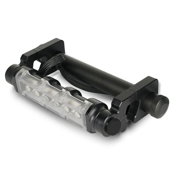 防弾シールド用ライト。800ルーメンの高出力で2段階の点灯モードを備え、暗所や近接戦闘時の視認性を大幅に向上。リチウムイオンバッテリーで駆動し、約3時間の連続使用が可能。素早くシールドに装着でき、現場での安全性と機動性を強化する装備です。