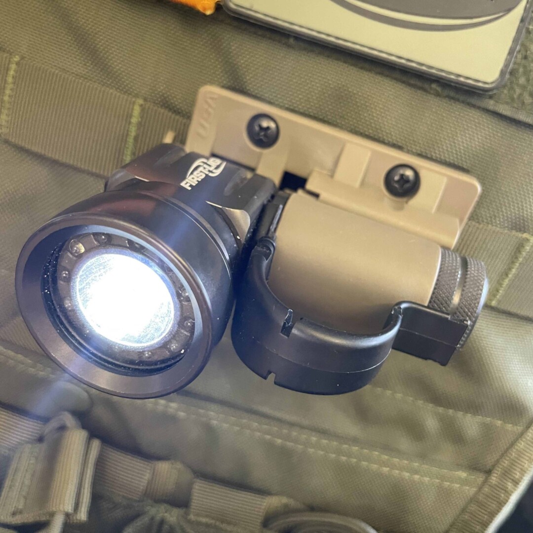 白・赤・緑・赤緑光に加えIRビークンを備えた戦術ライト。瞬時点灯、3段階照射、ロックアウト機能で高い操作性を実現。TRSマウントによりハンズフリー運用可能。軽量アルミボディとIPX4防水でタフに活躍します。