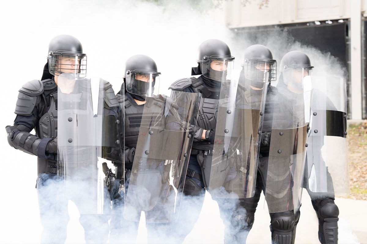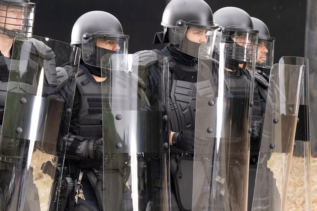 視界を確保する透明ライオットシールド
