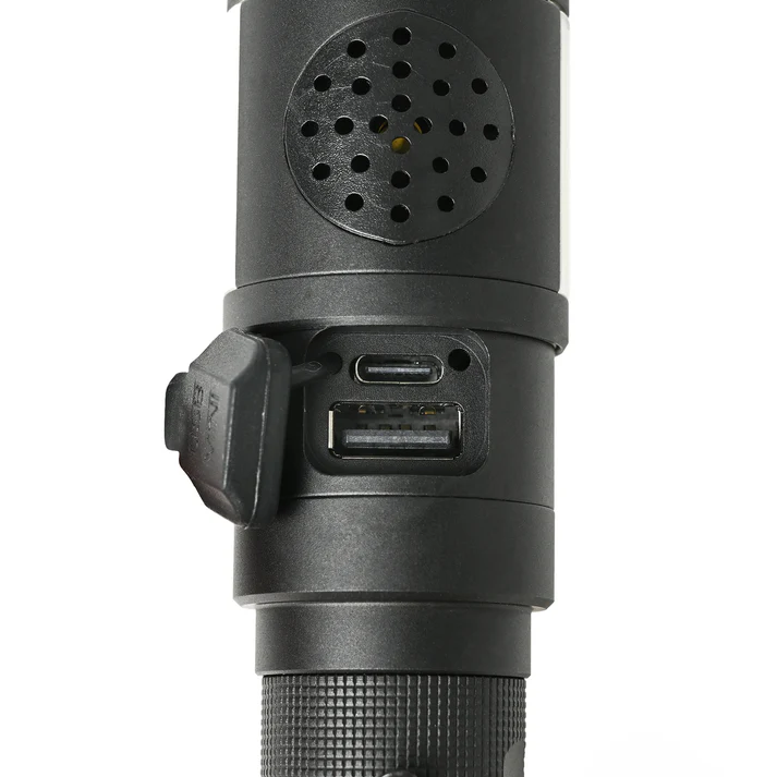 800lm ストロボと音響ブザー。大音量の防犯ブザーと強力なストロボ機能を組み合わせ、簡単な操作で救助と撃退を同時に行えるよう設計されています。
