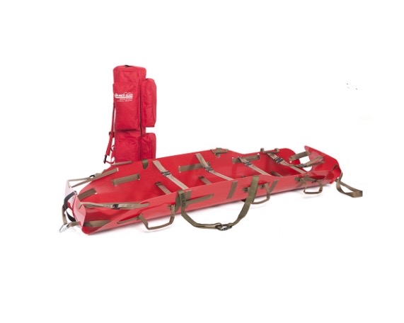 引き裂き、切断、穿刺に対して高い耐性を有する引摺式担架 - 傷病者はストラップで強固に固定し搬送可能