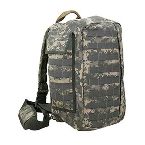 スリング式の資機材運搬バッグです。 取り外し可能なパネルを4つ備えていて、資機材のセットを配布できます。 また、オプションで防弾プレートも使用できます。