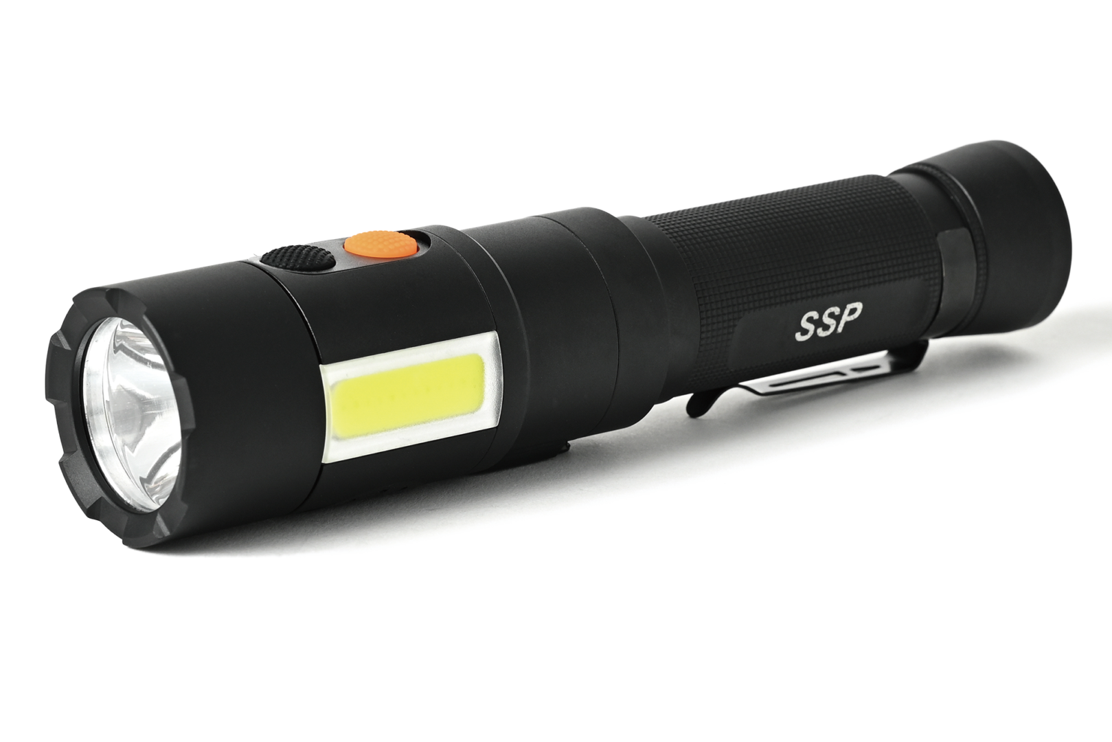 最大3,000ルーメンで2.7時間点灯可能なフルサイズライトです。5段階の明るさとストロボを含む6種類の設定ができ、脇の下にホールド可能な太さは夜間保安や警護等にあたる任務に適しています。