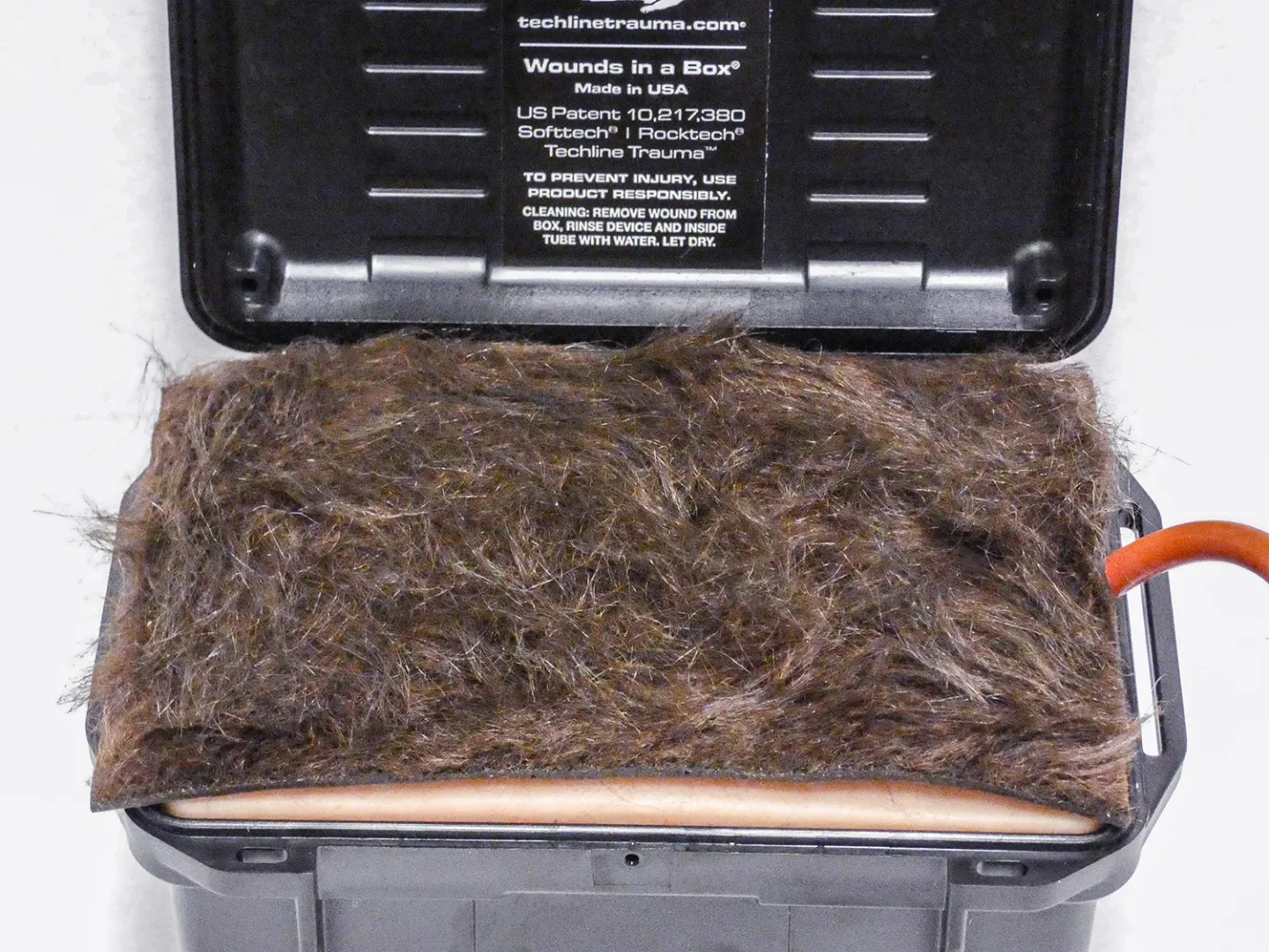 Gunshot in a Box ®タスク トレーナーは、軟部組織への銃撃をシミュレートし、学生に適切な創傷パッキング技術を指導するために使用されます。