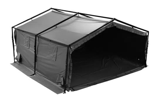堅牢なシェルターや多用途に対応するテントは、医療活動から指揮拠点まで幅広い用途に対応。人