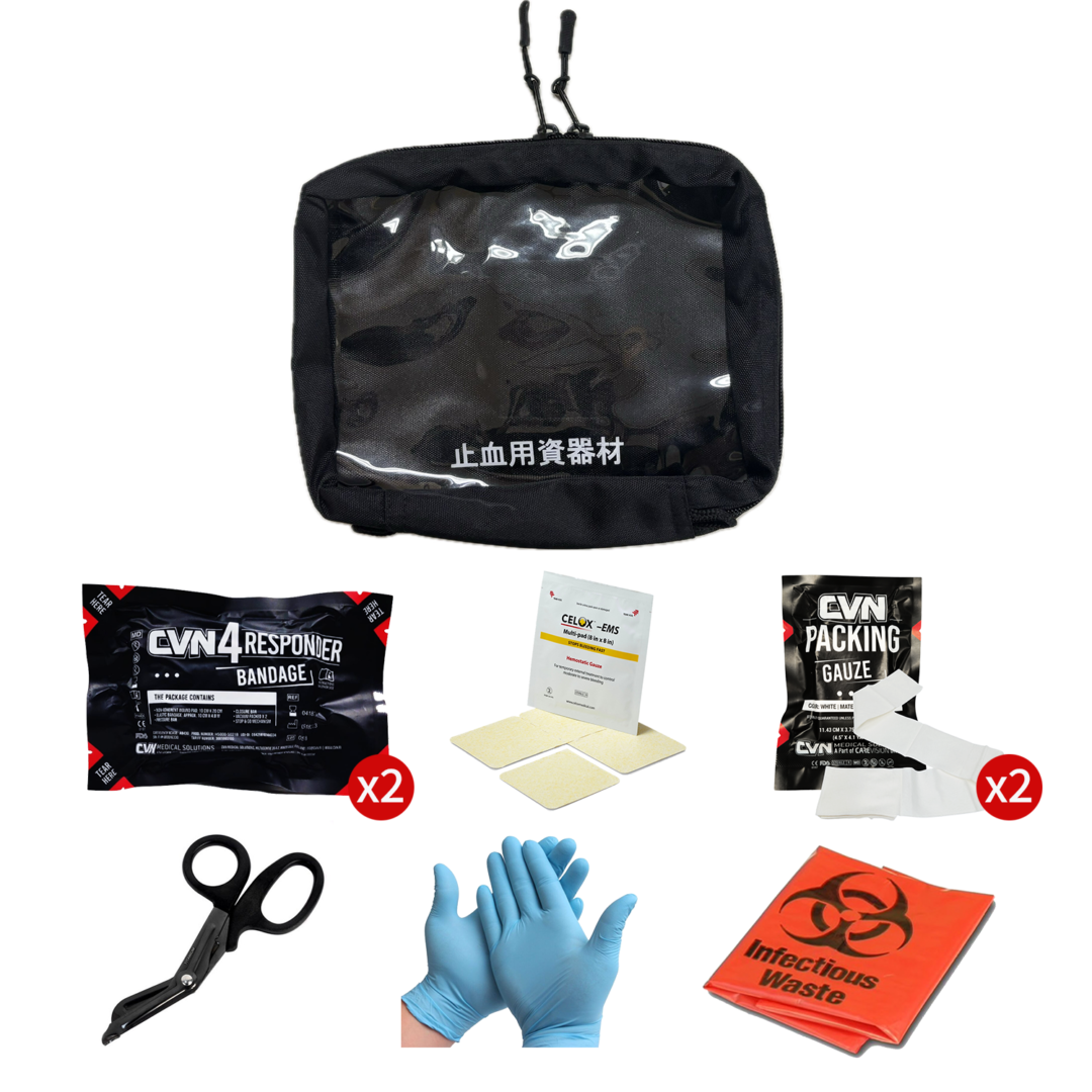 同時に複数人数の止血対応も可能な衛生用品セット